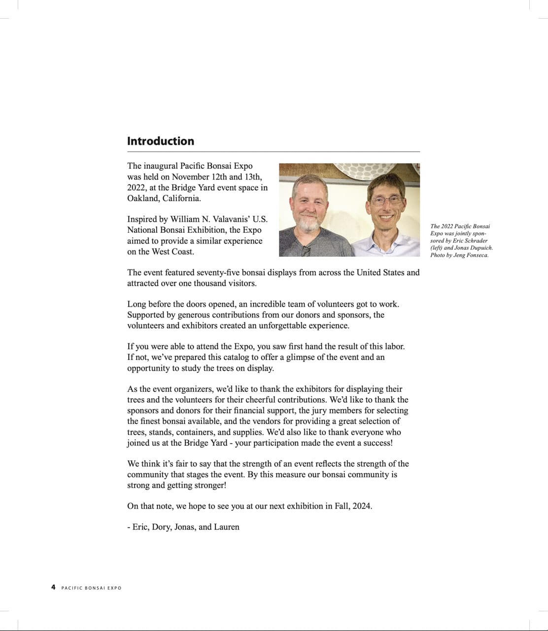 Enjoy professional photographs from the inaugural Pacific Bonsai Expo in the 2022 Commemorative Album. Pre-orders for the 2024 album will be available this fall.